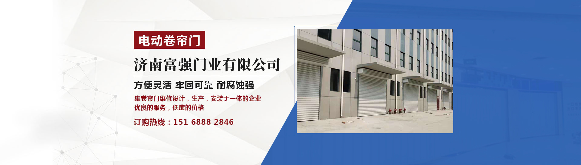 濟南富強門業(yè)是一家集研制、生產(chǎn)加工、銷售安裝于一體的卷簾門企業(yè),具有開發(fā)、設(shè)計、生產(chǎn)、銷售,安裝及維修服務(wù)的綜合配套能力。主要產(chǎn)品:手動卷簾門,電動卷簾門,、鋁合金卷簾門、、遙控卷簾門、手動車庫門、遙控車庫門,無框玻璃門等各種型材樣式的卷簾門安裝裝飾工程。公司堅持選用好的鋼材為客戶制作濟南卷簾門產(chǎn)品。公司堅持品質(zhì)做工不打折的公司理念,堅持選用好的鋼材為客戶提供好的產(chǎn)品。產(chǎn)品做工精,材料質(zhì)量好,是您選用濟南卷簾門產(chǎn)品的選擇。公司自創(chuàng)建以來,努力創(chuàng)...